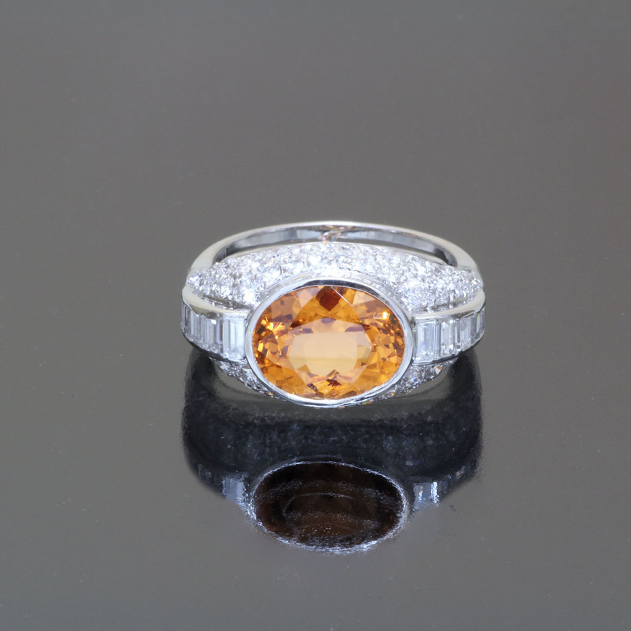 Ovaler Mandarin-Granat-Ring mit Diamanten